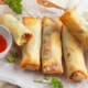 Home made spring roll (3p) with sweet chilli sauce Loempias (3s) met zoete chilli saus Rollos de primavera (3p) con salsa de chile dulce